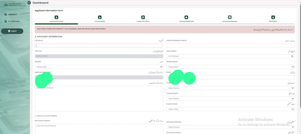اس مرحلے میں اپ نے اپنے متعلق تفصیلات لکھنی ہی اپنا مکمل نام والد یا شوہر کا نام قومی شناختی کارڈنمبر اپ کی تاریخ پیدائش اپ مرد ہیں یا عورت یہ لکھنا ہے اس کے بعد اپ شادی شدہ ہیں یا غیر شادی شدہ ہیں بیوہ ہیں اپ کی طلاق ہو چکی ہے اس کے بعد اپ نے ای میل ایڈریس لکھنا ہے اس کے بعد اپ نے ڈویژن لکھنی ہے ضلع تحصیل لکھنا ہے اپ نے اپنا مکمل پتہ لکھنا ہے اس کے بعد نیکسٹ کے بٹن پر کلک کرنا ہے