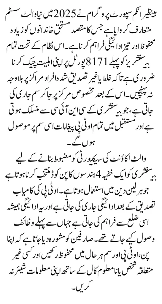 A dedicated SIM prevents unauthorized attempts to access the wallet account. Since the SIM is linked only to the beneficiary’s CNIC and used only for BISP-related communication, it works as a strong layer of security. Beneficiaries are also instructed to keep the SIM safe and inserted in their phone at all times, especially during payment cycles.
