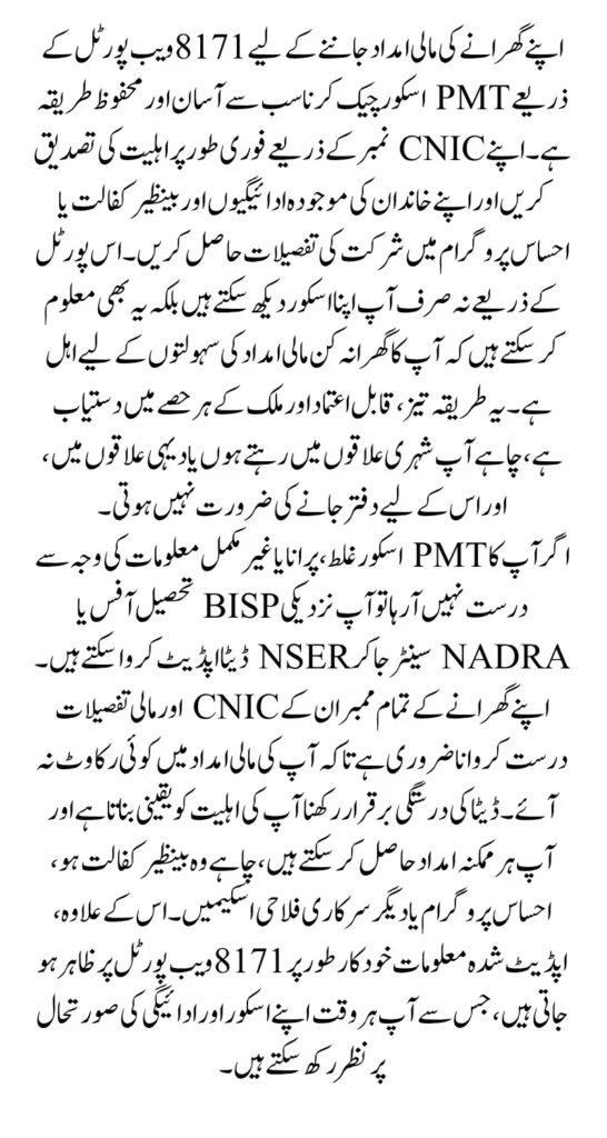 The 8171 Web Portal PMT Score Check 2025 has revolutionized access to government financial support. It provides transparency, efficiency, and fairness while ensuring that every eligible household receives assistance.