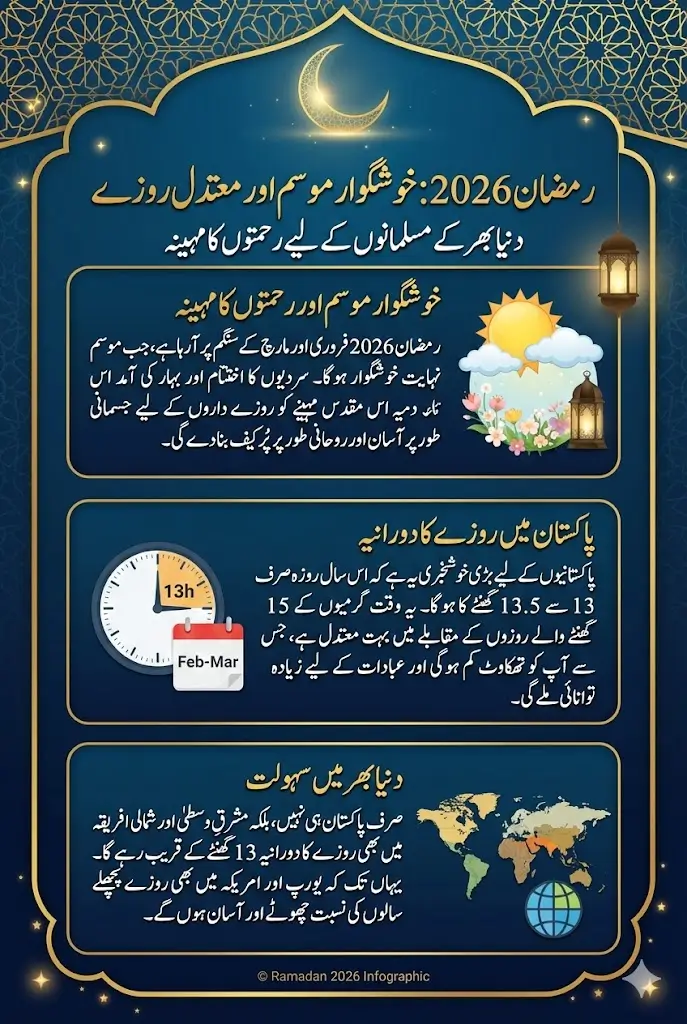 Ramadan 2026 offers a moderate fasting experience for Muslims in Pakistan and most parts of the world. With fasting hours ranging between 12 to 13.5 hours, the holy month will be easier to observe than summer Ramadan fasts.
